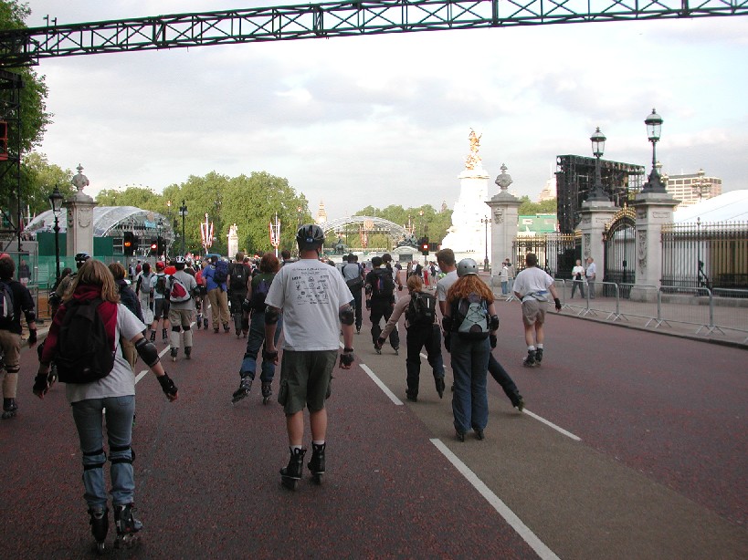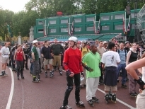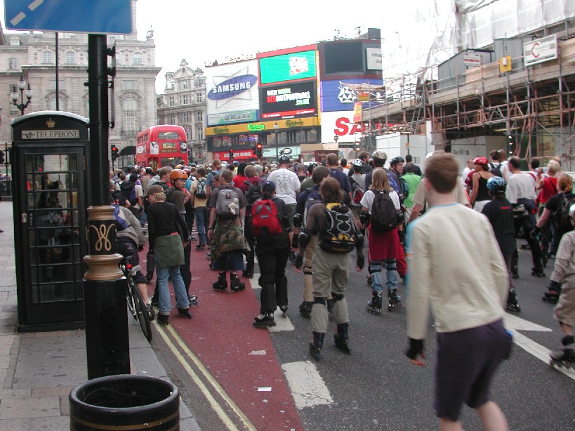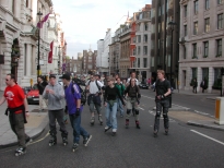 Over 350 skaters on this one, meandering around the West End, blowing peoples minds by going through Hyde Park mid-skate, blasting past Richard Branson's house in Holland Park, causing massive queues at a petrol station at Hammersmith, shooting past Kensington's Odeon Cinema (where the queuers for Star Wars witnessed the the most amazing thing their eyes would see that night), entering Sainsbury's Cromwell Road deliveries entrance and then meandering back through south Ken to the park.